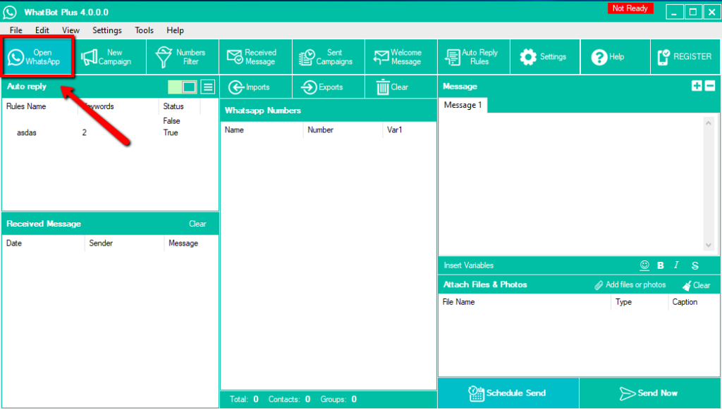 After that WhatBot Plus is opened, click on “Open WhatsApp” button on the top left