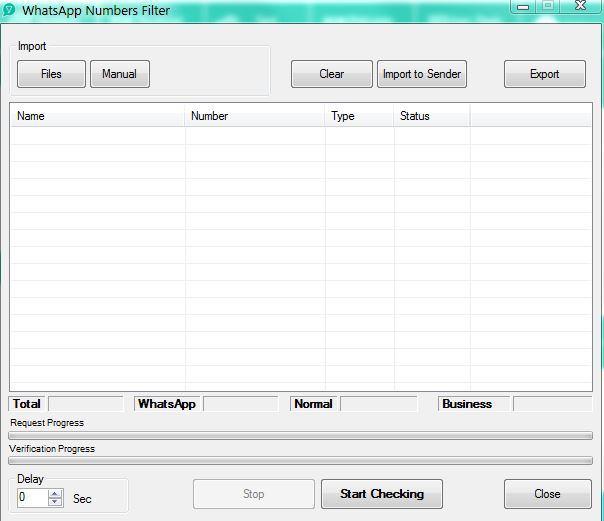 You can import the numbers either from excel, csv, txt files or enter them manually. We suggest to do not filter more than 1000 numbers per time to avoid ban issues!