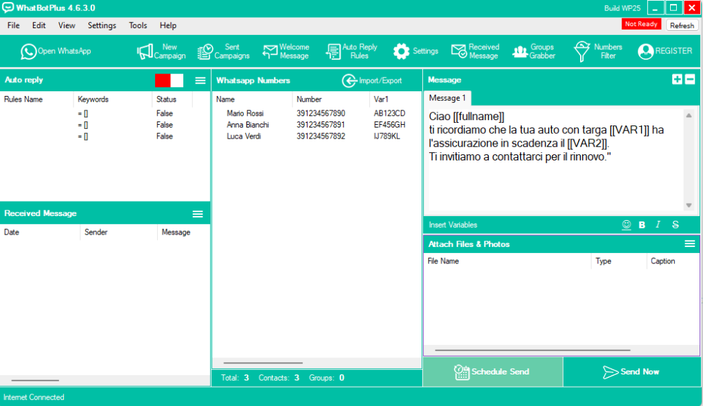 In this article, I will provide a step-by-step guide on how to use WhatBot to send personalized WhatsApp messages. For the sake of clarity, let’s assume you want to send a reminder to customers about their insurance expiration date, including the customer’s name, car license plate number, and the insurance expiration date in the message.